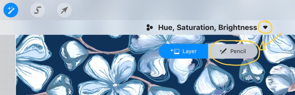 This is my new favorite thing: using the color effects but with the pencil (not applying to the full design). I will explain with a quick example! Let’s say I want to provide a new color for my “China Ink Flowers” collection (that you can find here).