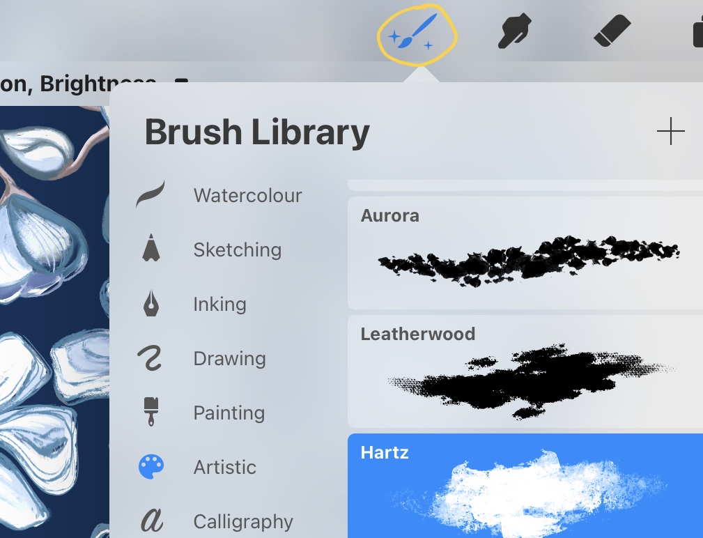 Once you have the brush selected – play with the Hue, Saturation and/or the brightness and try it! When you have effects you wanted, you can apply (click one finger on the void to see the menu)